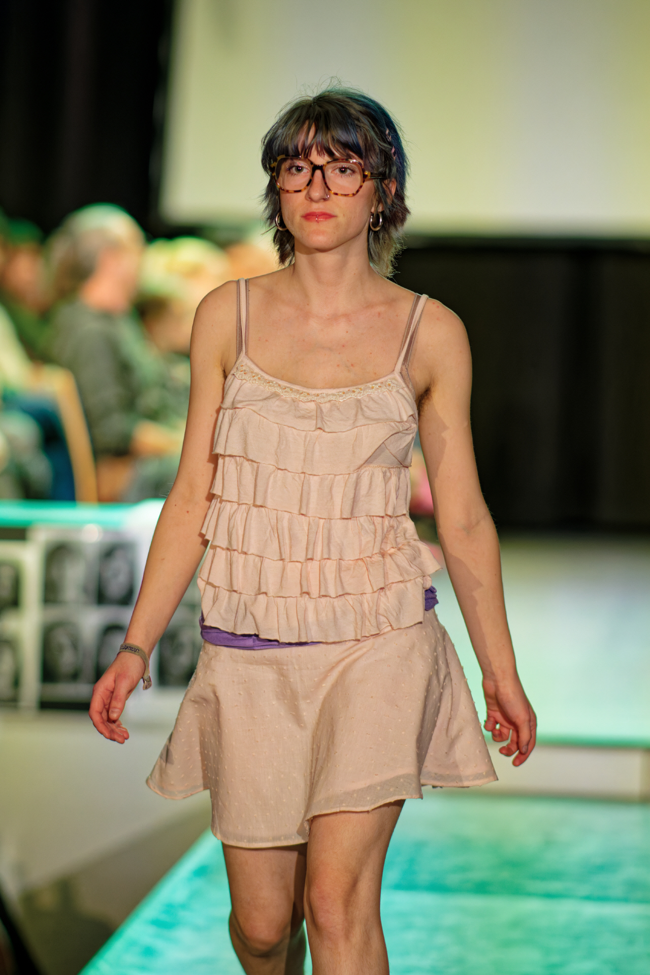 "Gefühle machen menschlich und hinterlassen Chaos. Unsere intensiven Innenräume werden durch Mode sichtbar", sagte Moderatorin Pia Maiwald während der Show. Mit diesem Gedanken im Rücken entstand eine Modenschau, in der Stoffe, Farben und Schnitte Geschichten erzählten - von Freude, Trauer, Stärke, Wut, Stolz, Ekel, Liebe und innerem Frieden. Pastelltöne trafen auf tiefes Schwarz und leuchtendes Rot; klare Linien wechselten sich mit verspielten Details ab. Neben der Bühne setzten schwarz-weiße Porträts mit ausdrucksstarken Gesichtern zusätzliche Akzente.