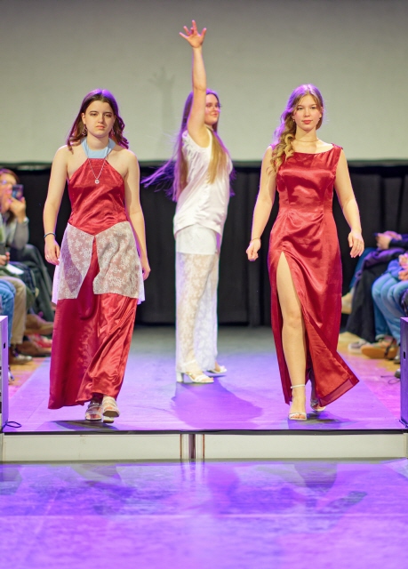 Neu in diesem Jahr war, dass auch sechs Schülerinnen und Schüler der achten Klassen der Mittelstufenschule mitwirkten. In einem Kurs gestalteten sie eigene T-Shirts und brachten so frische Perspektiven auf den Laufsteg.